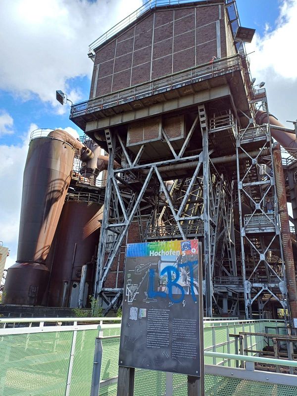April, April der macht was er will, so hätte das Motto, zumindest wettermäßig, für unsere Wanderung zum Landschaftspark Duisburg lauten können. Gestartet sind wir bei lausigen 5 Grad, windig und regnerisch. Angekommen in Duisburg öffnete Petrus seine Schleuse und es regnete aus Eimern. Durch den aufkommenden Wind war es außerdem schwierig die Schirme zu halten. Sollten wir die Wanderung bei dem Wetter überhaupt durchführen, oder direkt das Lokal aufsuchen? Als wir den Landschaftspark erreichten, hörte es schlagartig auf zu regnen und die Sonne kam hervor. Jetzt wollten wir natürlich auch wandern und den Park besichtigen. Sehenswert waren die Hochöfenanlagen, die wir in dem stillgelegten Hüttenwerk durch Treppenaufgänge besteigen konnten. Mit einer fantastischen Aussicht über das ganze Hüttengelände. Hier wurden auch Teile des neuen Films “Tribute von Panem-The Ballad of Songbirds and Snakes” gedreht.