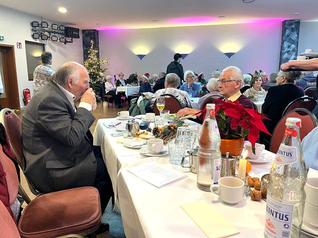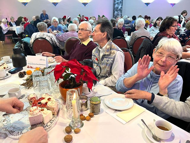 Die Weih­nachts­fei­er 2024 war ein vol­ler Erfolg und erfreu­te sich wie­der gro­ßer Beliebt­heit. Der sonst übli­che Ter­min für die Fei­er muss­te um eine Woche wei­ter ver­legt wer­den. Lei­der hat es dadurch der Bericht über unse­re Fei­er nicht mehr in die Aus­ga­be unse­rer Druck­schrift 2024 geschafft. Die Ver­schie­bung des Ter­mins führ­te zu Kon­flik­ten mit der Dru­cke­rei, die in die betrieb­li­chen Weih­nachts­fe­ri­en ging. Doch genug davon — der Nach­mit­tag war den­noch ein gemüt­li­ches und fröh­li­ches Bei­sam­men­sein. Dank einer umge­stell­ten Orga­ni­sa­ti­on gab es in die­sem Jahr kei­nen Platz­man­gel, was zu einer ange­neh­men Atmo­sphä­re beitrug.